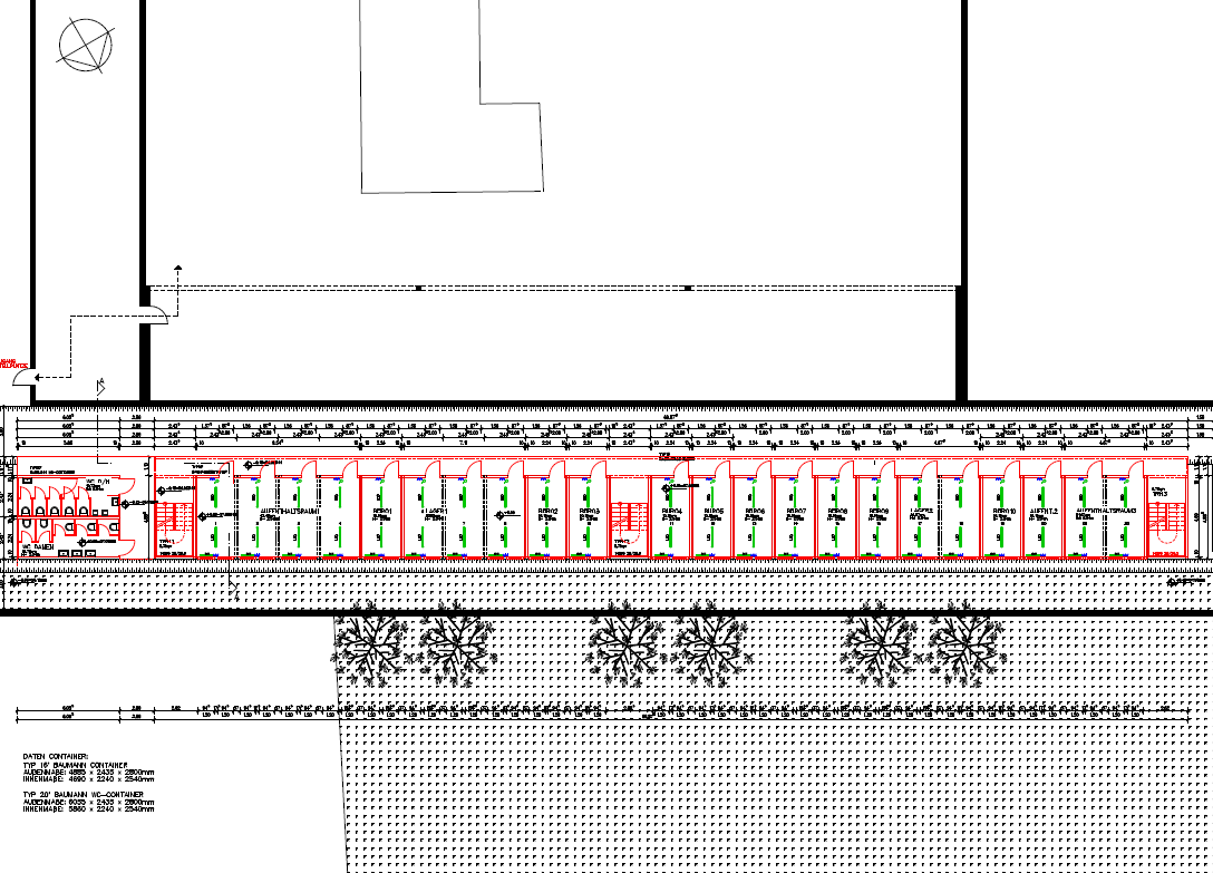 Für das Filmset benötigt die Crew geeignete Container, die als Büro-, Lager- und Aufenthaltsflächen dienen. Insgesamt sind 49 Container sowie 2 Sanitärcontainer ...