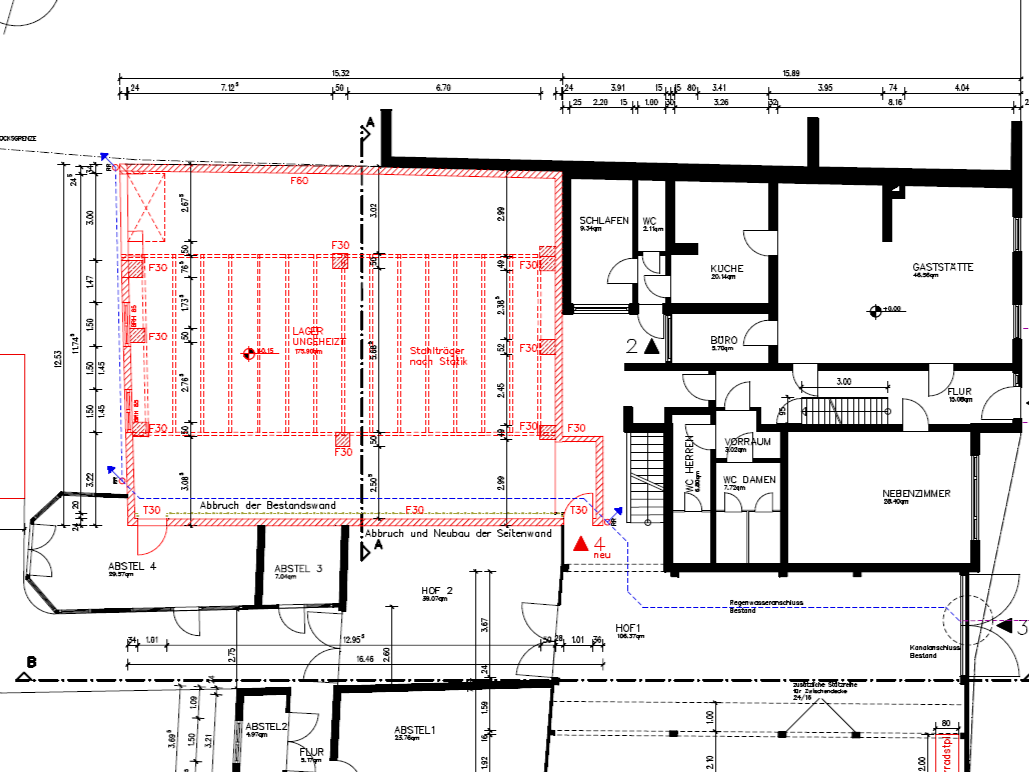 Geplant ist eine Nutzungsänderung der Nutzfläche im Dachgeschoss in eine Wohnung mit Dacherhöhung und Errichtung einer Dachgaube mit Umbau zu einem ...