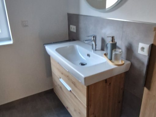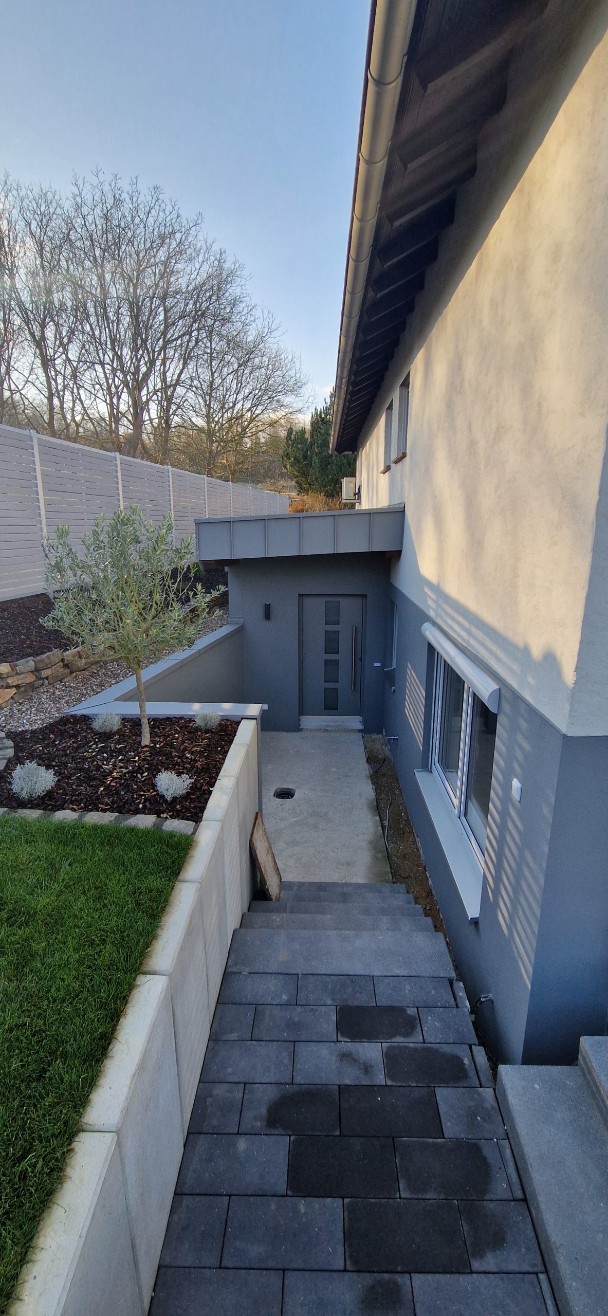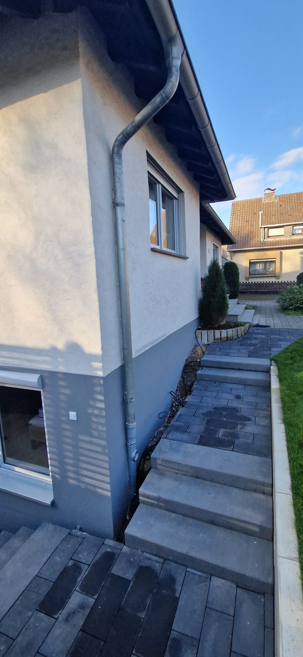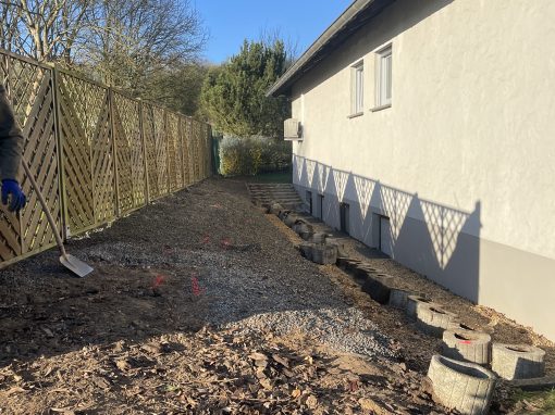 Das Kellergeschoss wurde seitlich freigelegt, sodass über den neu errichteten Anbau ein externer Zugang geschaffen werden konnte. Das gesamte Kellergeschoss wurde ausgebaut und saniert und ist nun mit den großzügigen neuen Fenster eine helle wunderschöne Wohnung.